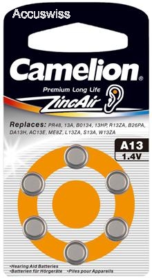 Camelion A13 Zink-Luft Hörgerätebatterie im 6er Pack