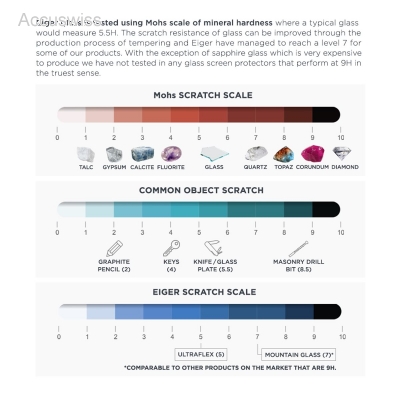 Die EIGER 2.5D Flachgläser sind 9-mal härter als ein Standardglas und verfügen über ein 0,33 mm ultradünnes, kratzfestes Design mit abgerundeten Kanten und einer hochauflösenden Klarheit.