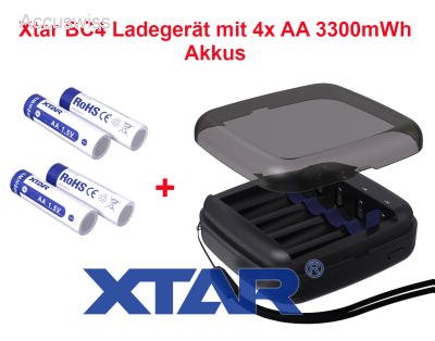 Xtar BC4 Ladegerät für AA, AAA 1.5V Li-Ion Akkus + 4x AA 3300mWh